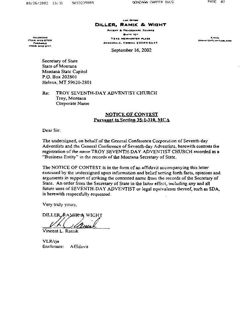 Update 03/25/07: A two-page letter has been sent out to a large number of Adventists to inform them of the Trademark lawsuit, of which most are unaware. Positive responses have already begun to be received as a result of this information.