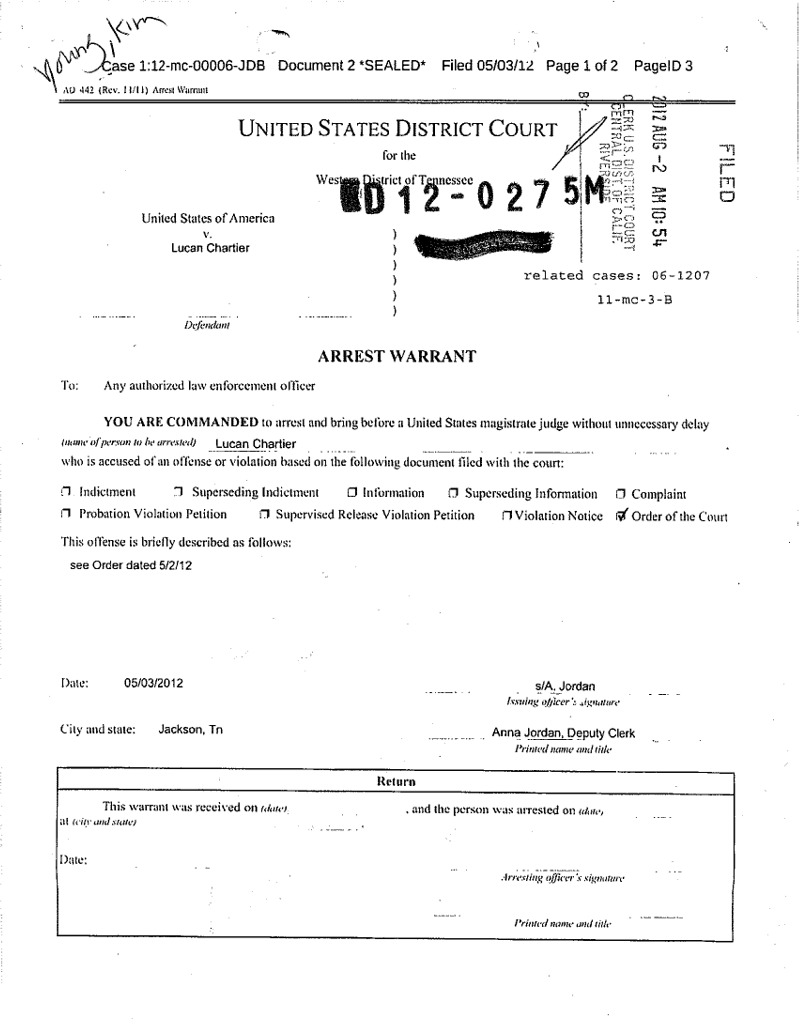 Update 5/22/10: Subpoenas are received by Lucan Chartier and three others to appear at a contempt hearing in Jackson, TN on the 25th of May at 10:00 am.