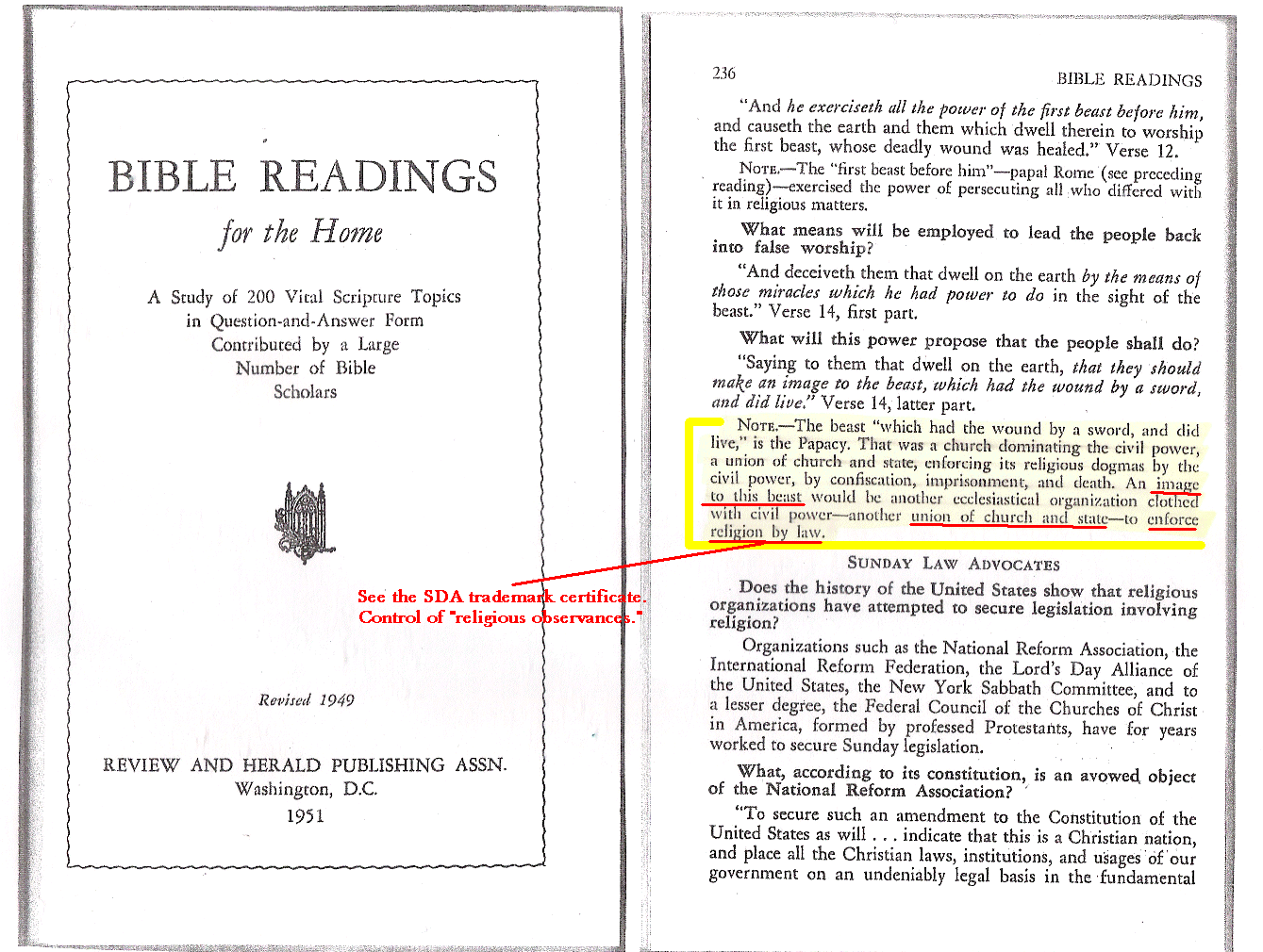 Though the satanic efforts put forth by the General Conference in enforcing its decrees have gone relatively unreported in the past few years, it must not be thought that they have turned from their course of action. Indeed, recent information shows that they are going forward with their oppressive law, and a new round of legislation is about to begin. Please see the hyperlinks above to examine each of the key issues introduced here in greater detail, and may the Almighty be with the reader as the following quotations are considered: