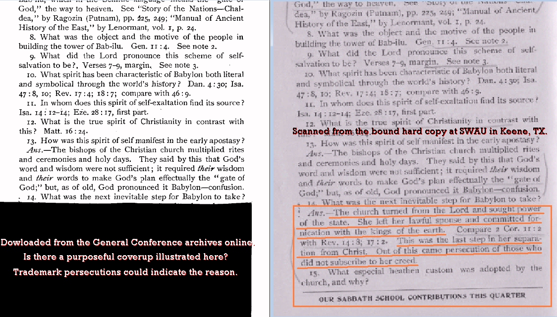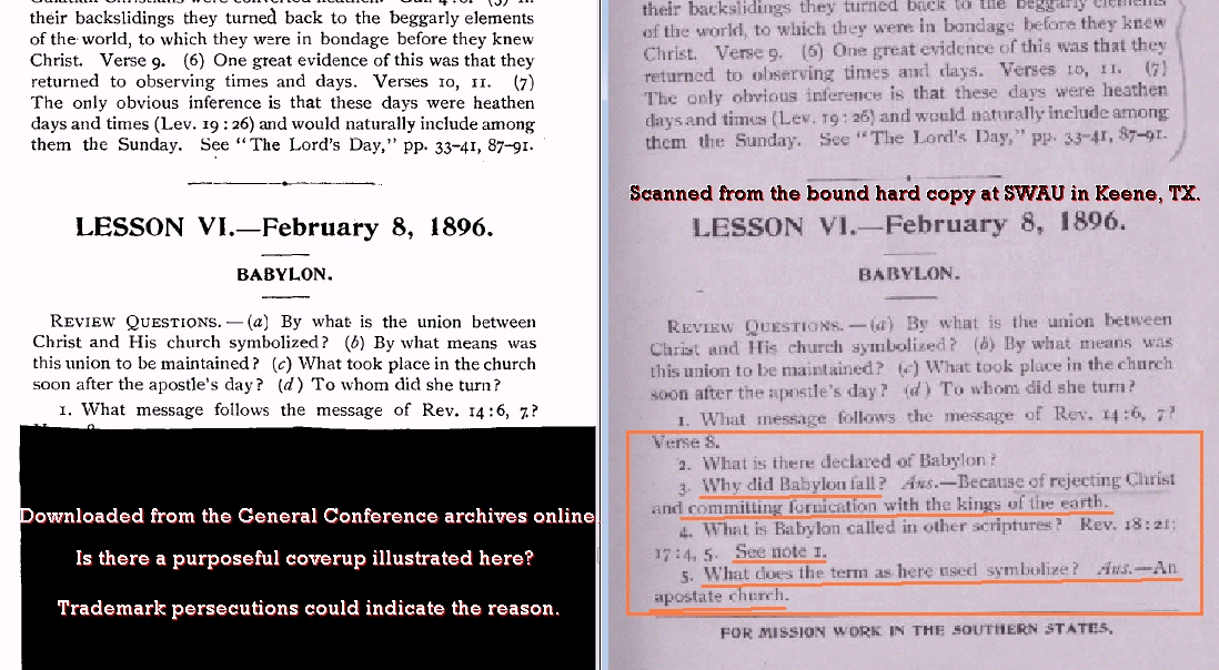 (These documents show the original - and correct - Adventist position on the Sabbath and Lawsuits)