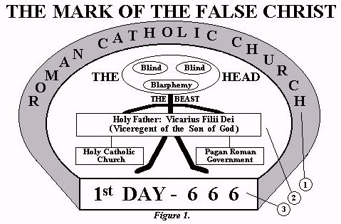 The mark of "the false christ" is the mark of "antichrist." The Papacy, or combination of the apostate Holy Catholic Church and the Pagan Roman government, is "the beast" of Revelation 13.The beast is blind in both eyes, claiming to be "the head" of the Church of Christ. While making such a claim, he has a mouth full of blasphemy.