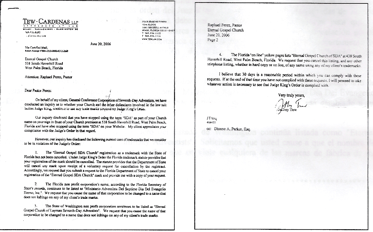 Demand Letter to Pastor Perez from General Conference Attorneys